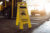 Ein Kunde stürzt auf einem frisch gewischten Boden und verletzt sich.